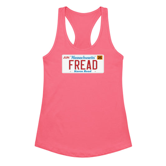 Microdots "Karen Read was Framed" License Plate Design - Women's Racerback Tank